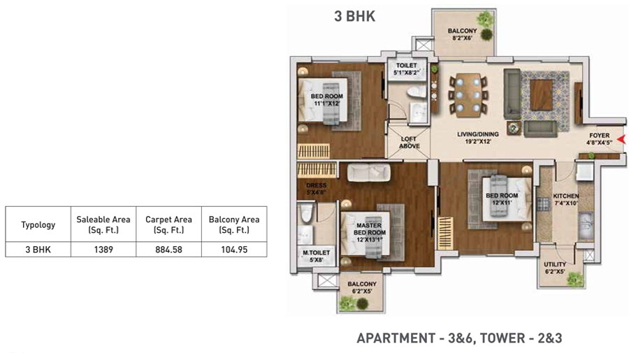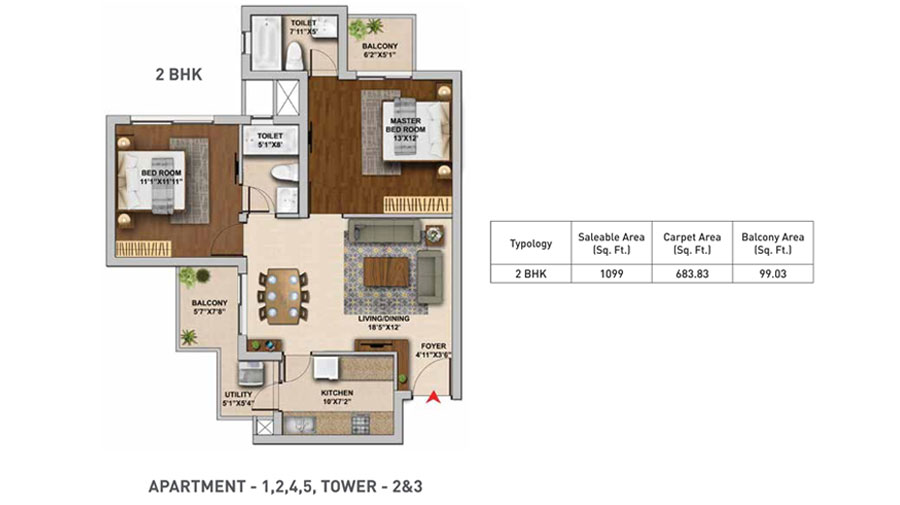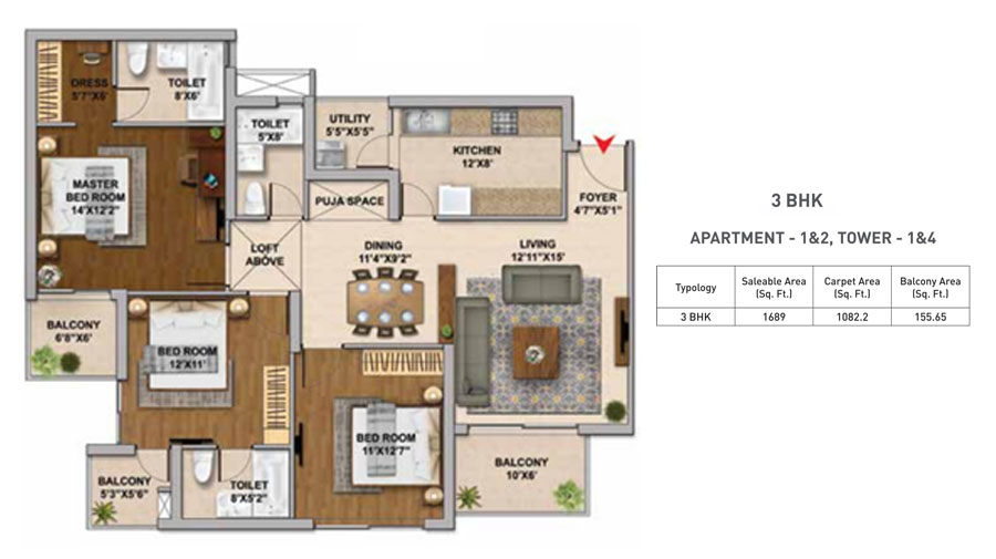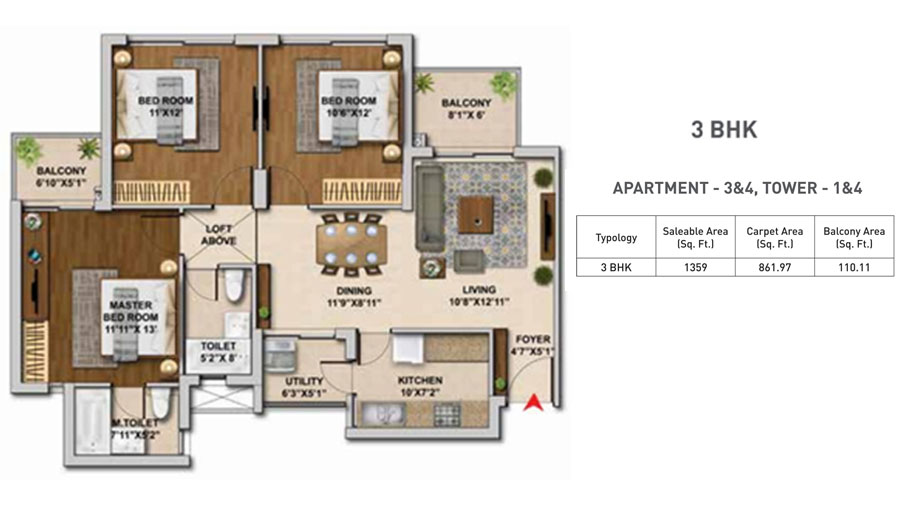 | 2 BHK + Family Lounge | 1359 Sq.ft. |